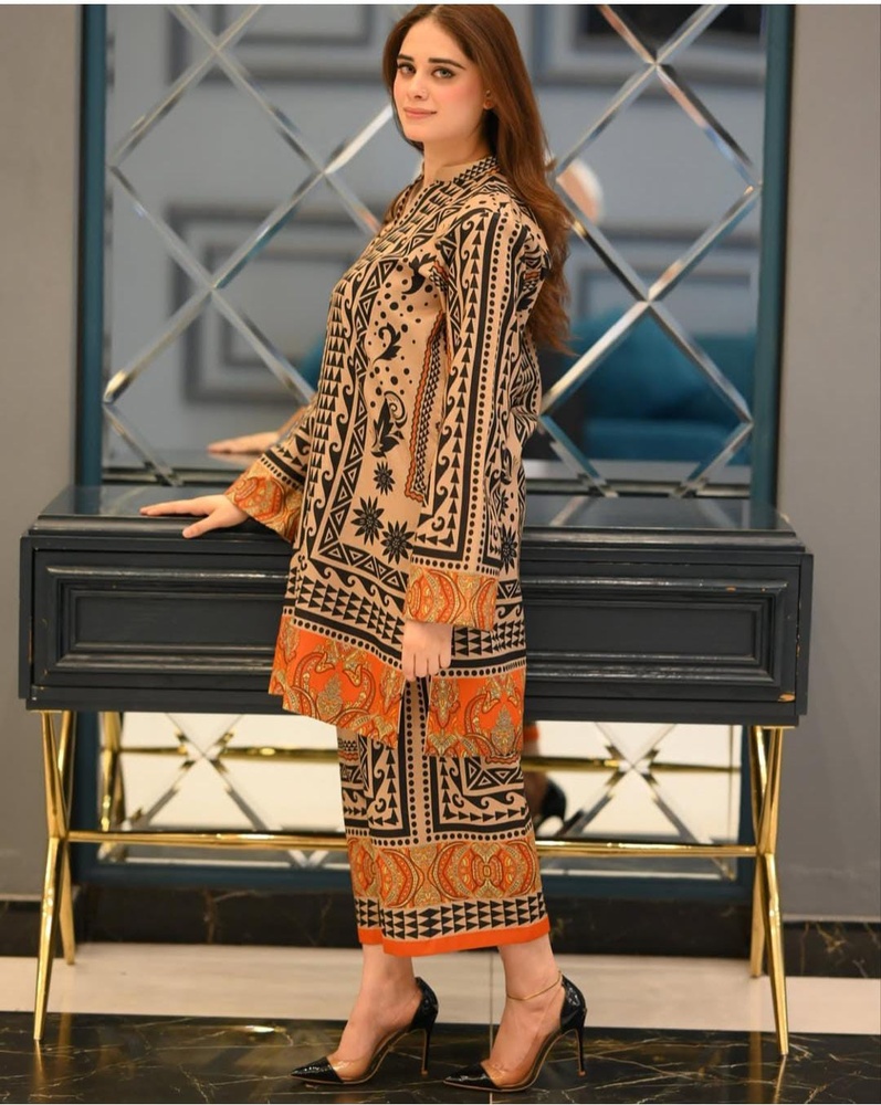 মহিলাদের জন্য স্টাইলিশ ডিজিটাল প্রিন্ট কটন সিল্ক টু পিস। নরম ফ্যাব্রিক, আরামদায়ক ডিজাইন এবং দৈনন্দিন পোশাক, অফিস এবং ক্যাজুয়াল আউটিংয়ের জন্য উপযুক্ত।